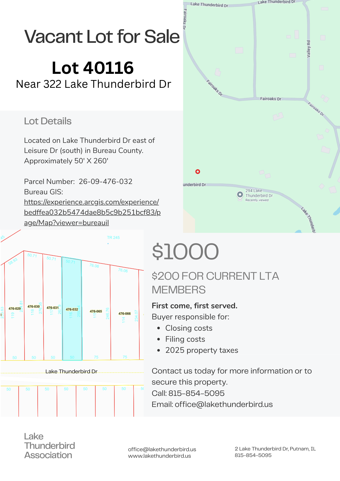 Questions can be directed to the office staff by phone (815-854-5095) or (office@lakethunderbird.us).